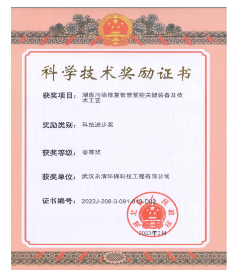 湖庫污染修復智慧管控關鍵裝備及技術工藝喜獲2022年湖北省科技進步獎
